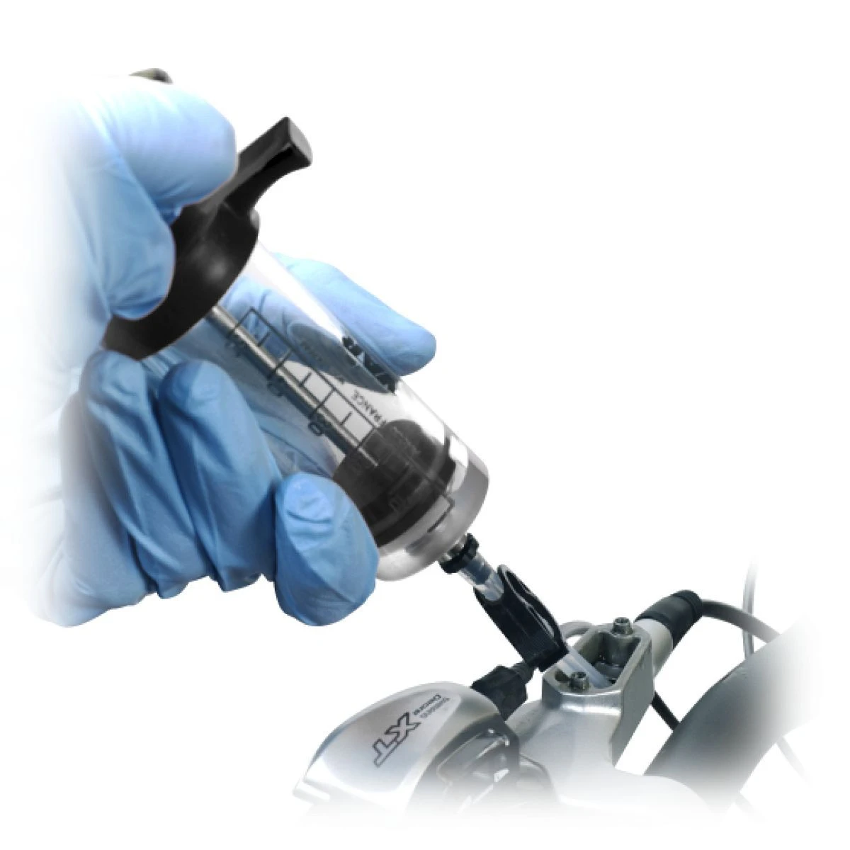 La seringue peut donc se transformer en entonnoir pour les purges Shimano.
