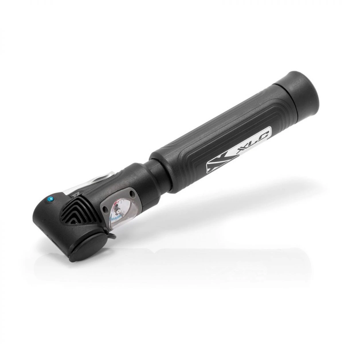 Pompe double tête avec levier en aluminium et manomètre.